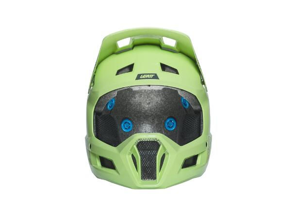 Fullface-hjelm med suveren beskyttelse og Leatt sin 360 ° Turbine Technology som reduserer risikoen for hjernerystelse ved kraftige sammenstøt. Ventilasjonskanalene er ikke tildekket, noe som gjør sykkelhjelmen spesielt godt egnet når det er varmt og sola steiker.